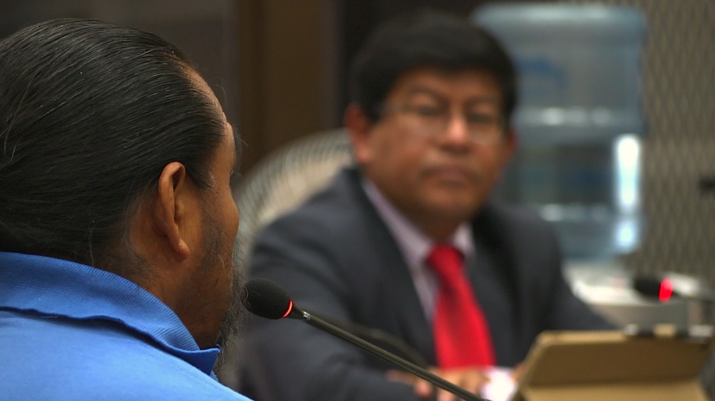 Rigoberto Juárez Mateo declara ante la juez Claudette Domínguez en apoyo de la recusación solicitada por su abogado defensor Lic Benito Morales. Foto: Red Tz'ikin