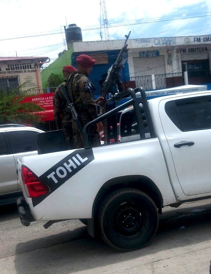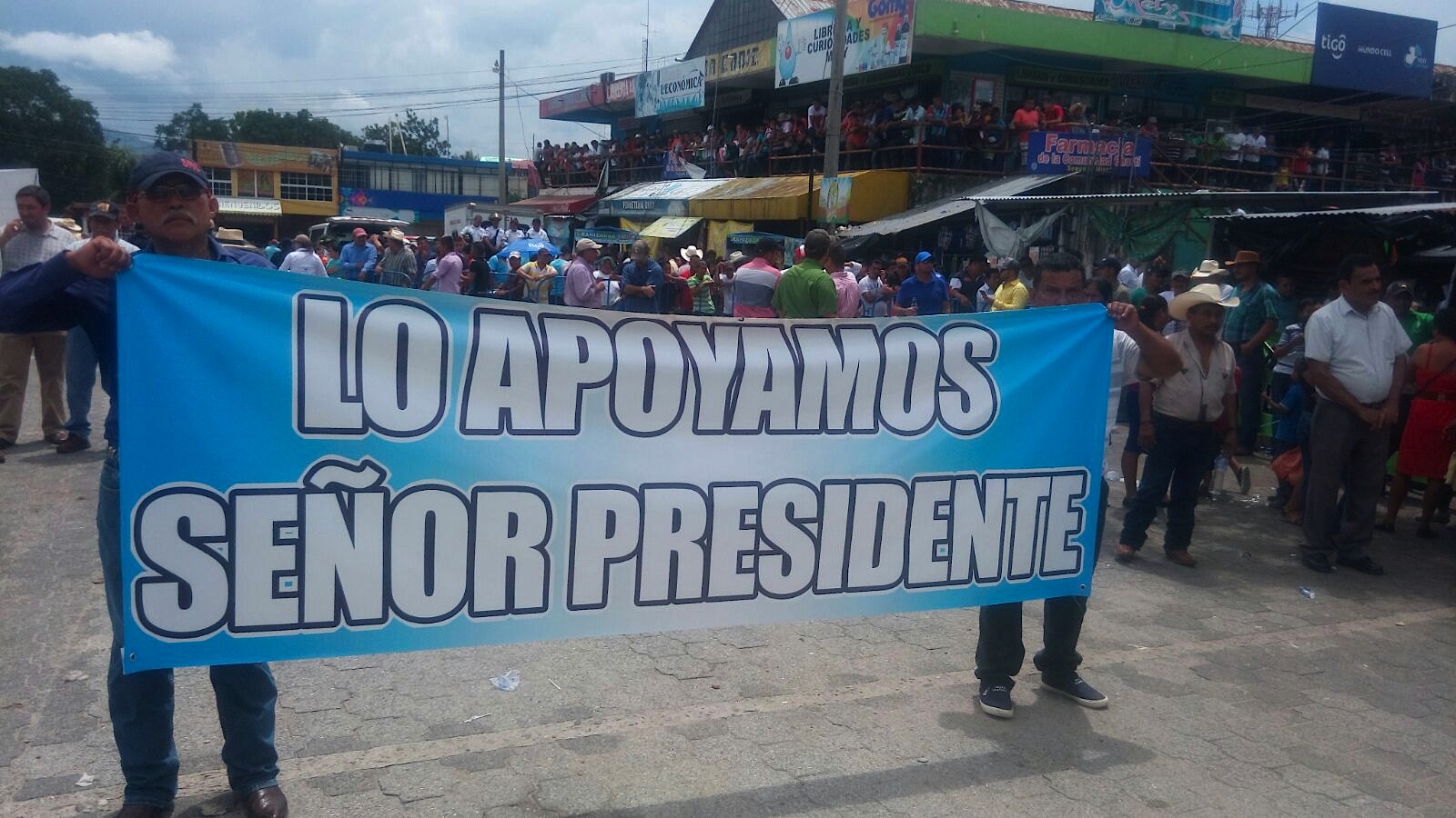 Jimmy Morales se presentó hoy domingo 24 Septiembre 2017 en el municipio de Los Amates, Izabal, para realizar un mitin político con un gran despliegue policial y del ejército en el que pudo verse fuerte presencia de policía, soldados, kaibiles y francotiradores. La mayoría de los presentes era gente curiosa de Los Amates que se acercó a ver la actividad pero también pudo observarse una gran cantidad de ganaderos provenientes de varios puntos de este departamento de Izabal.