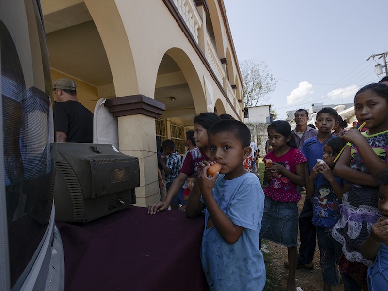 Desde el pueblo Q'eqchi' por primera vez en Chisec, Alta Verapaz televisión comunitaria retransmitiendo en directo.