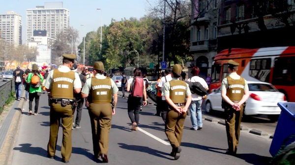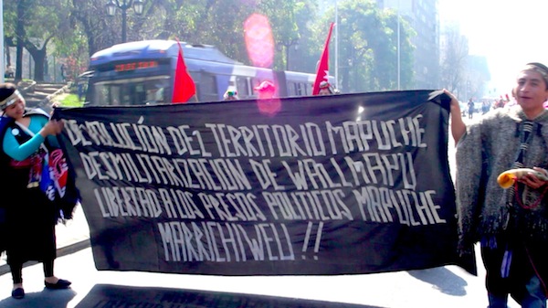 5-09-15 Santiago de Chile. "Exigimos: Devolución del territorio Mapuche. Desmilitarización de Wallmapu, Libertad a los presos políticos Mapuche. Marrichiweu !"