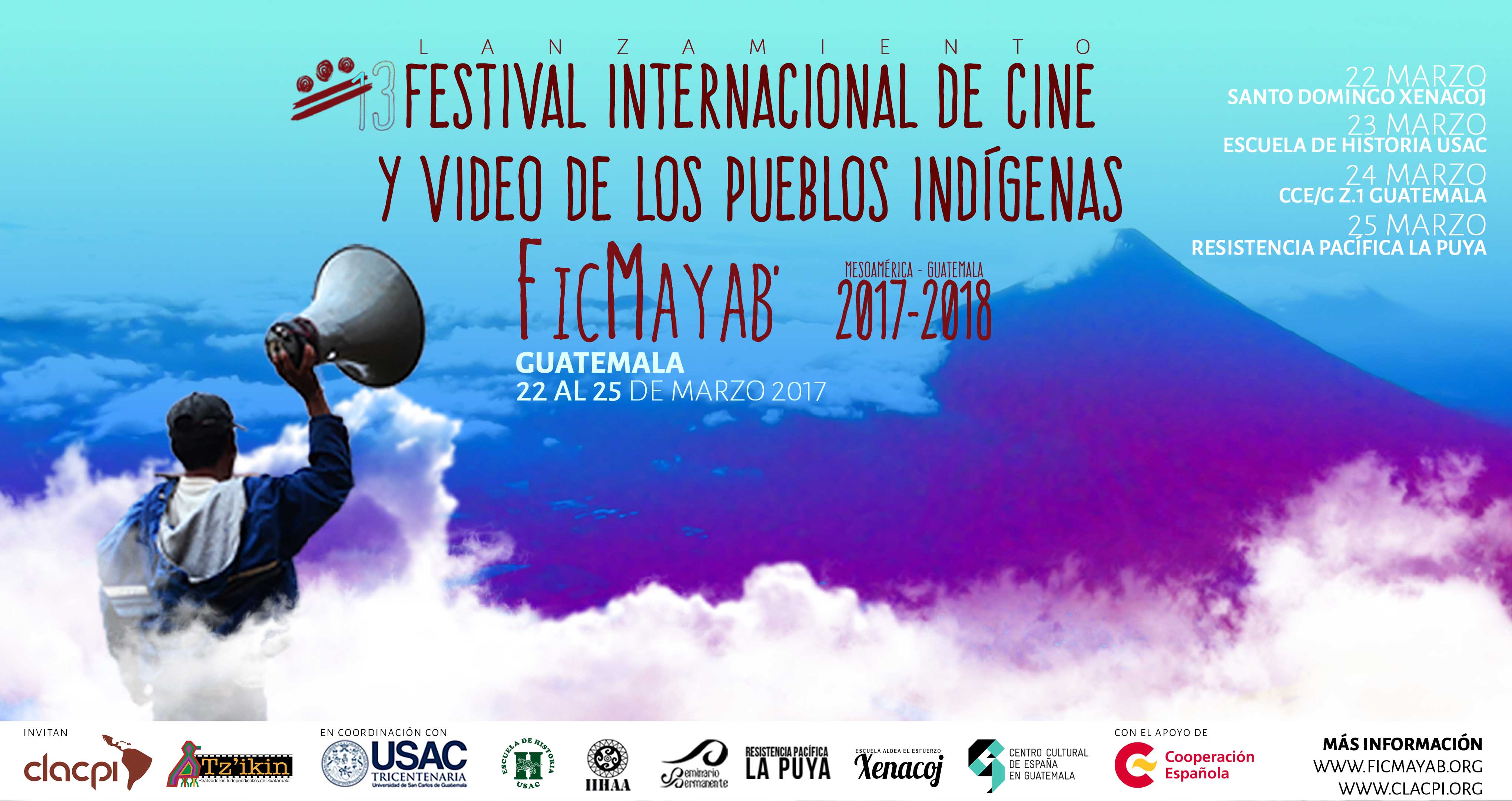 El Festival Internacional de Cine y Video de los Pueblos Indígenas, que se celebra cada 2 años en una sede-país diferente, es el más importante en su género para los Pueblos Indígenas del Abya Yala (América Latina). La CLACPI decidió en su última Asamblea que el 13º Festival de Cine y Video de los Pueblos Indígenas se celebrara en Mesoamérica, con sede principal en Guatemala; a este Festival se le ha denominado FicMayab’.
