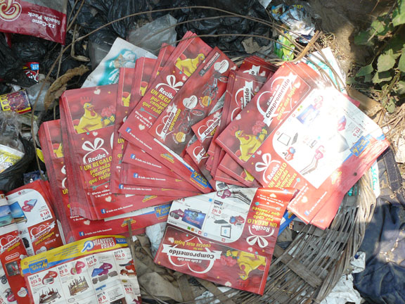 Un repartidor de propaganda terminó temprano su trabajo… parte de la basura encontrada en este vertedero.