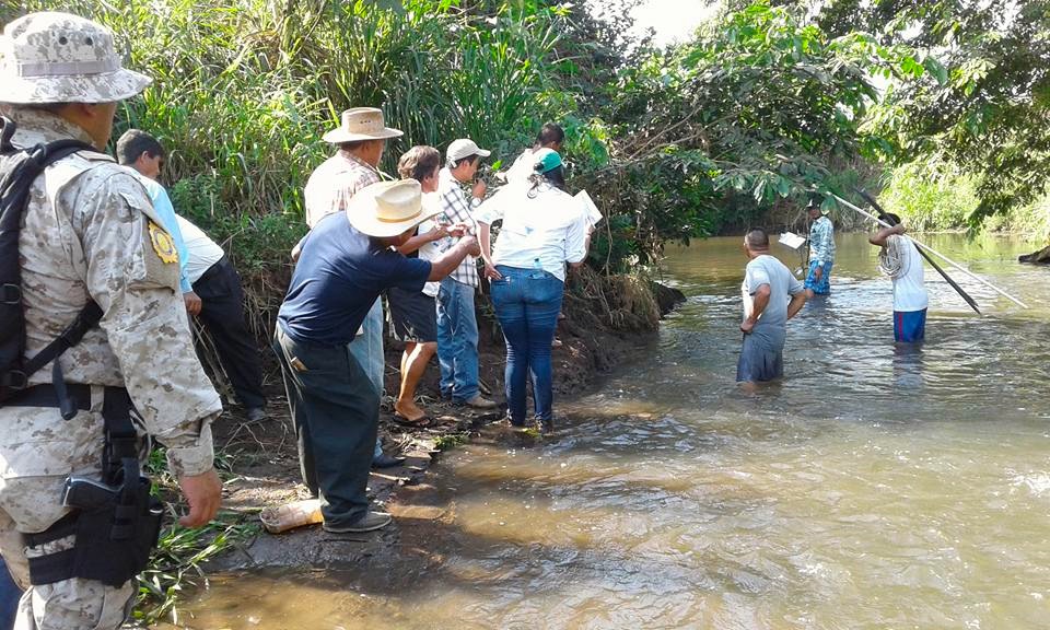 En horas de la mañana el día de hoy (9-02-2017) se realizó un monitoreo del caudal del río Bolas a la altura de la finca La Virgen, adyacente a la finca Las Conchitas, en el municipio de Champerico, Retalhuleu.