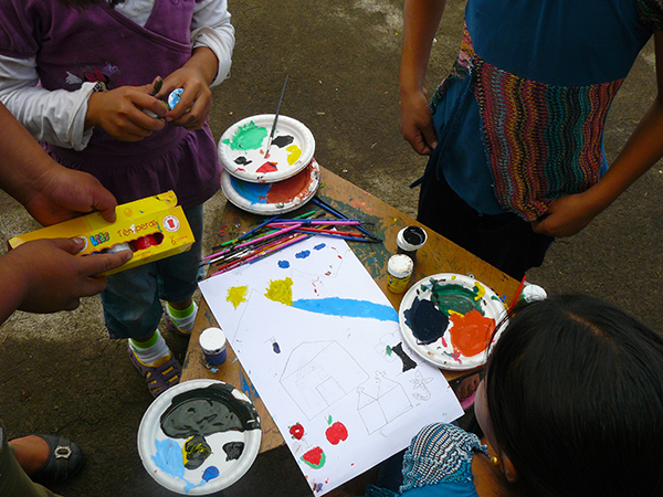 Guatemala, Escuintla, Escuintla, Col. 15 de Octubre La Trinidad. 17 de Junio 2015. Desde las faldas del volcán de Fuego, en la Escuela Oficial Rural Mixta de La Trinidad, Red Tz’ikin promueve el Concurso de Dibujos Infantil como primera actividad con la que arranca la 4ª Muestra de Cine y Video en Defensa de la Vida y el Territorio.