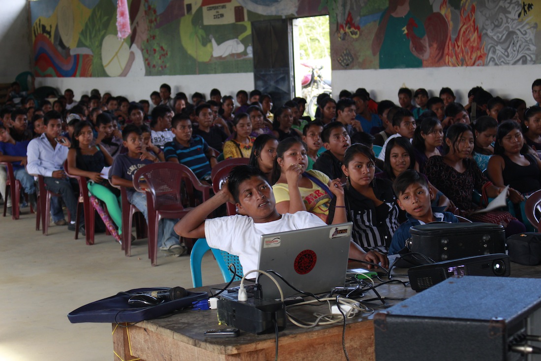 Una copia de los materiales proyectados fue entregada a los directores de los centros educativos, con quienes Tz’ikin TeVé espera poder seguir coordinando muchas actividades más…. En los próximos días Tz’ikin TeVé estará siendo proyectada en otras comunidades de Ixcán que se encuentran en resistencia contra la construcción de la represa Xalalá.
