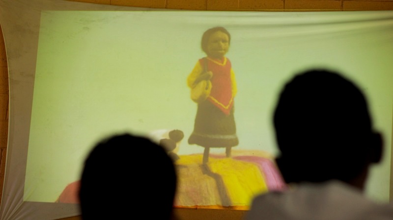 Especialmente importante fue la proyección del corto de ficción "El camino es largo" de Edgar Sajcabún, que a los pequeños les cautivó por completo, ya que se identificaron mucho con los dos protagonistas que por entretenerse en el camino a la escuela son severamente castigados. Además este corto está narrado en idioma Maya Kaqchikel, idioma materno de la mayoría de la población de la comunidad Don Pancho, pero que lamentablemente las y los jóvenes están poco a poco desvalorizando y perdiendo. El corto y la Muestra en si ayudaron a la revalorización de la identidad cultural de los pequeños.